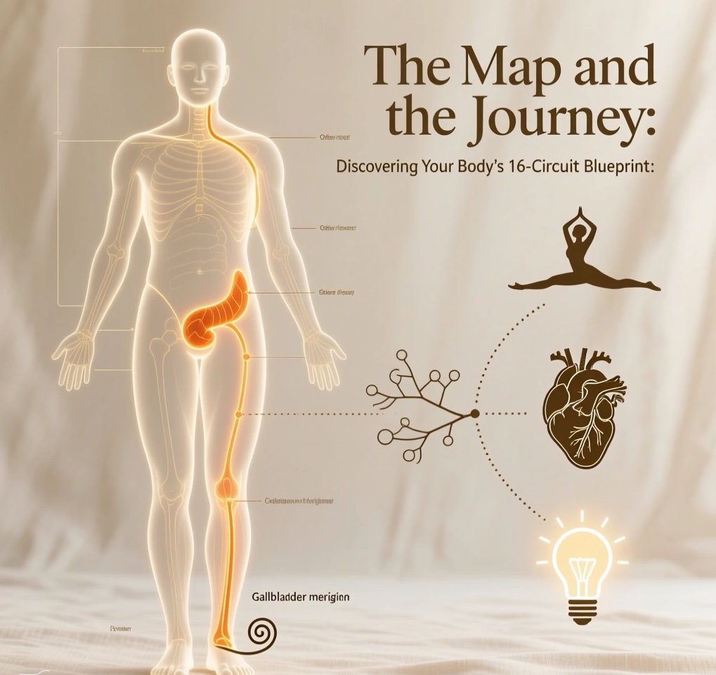 Explore the full 16-Circuit Meridian Map and the elemental correspondences behind this practice in The Map and the Journey.
